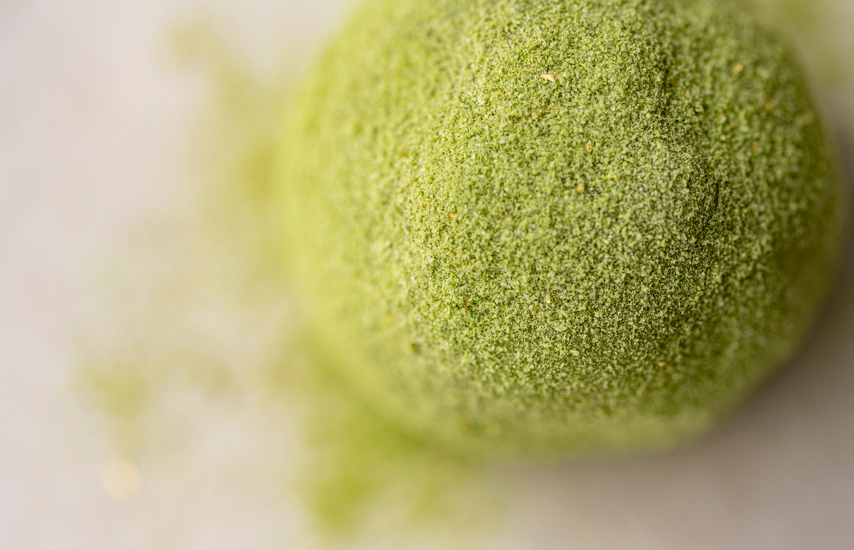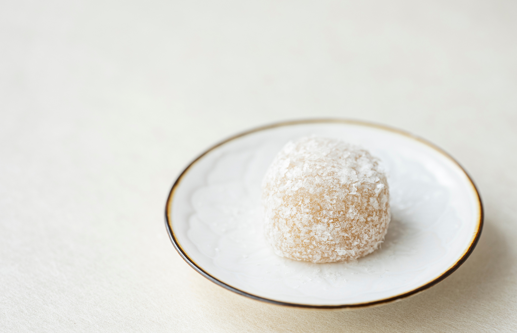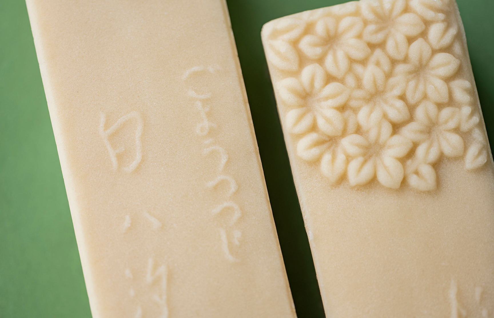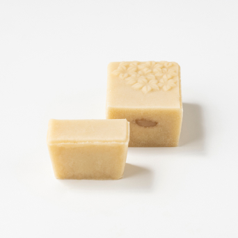 金箔入り極上求皮でゆり根入りの 白百合餡を包み、 表面に和三盆抹茶をまぶしました。 美しくとろけるような 舌触りのお菓子です。