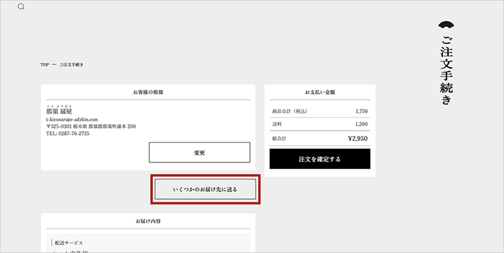 こちらのページでは複数のお届先を指定する方法をご説明致します。