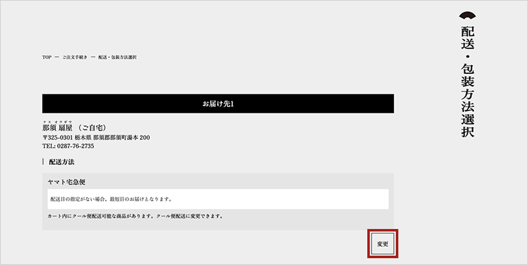 「クール便の指定(ご注文商品による)」「お届け希望日・お届け希望時間帯・詳細指定事項)」が「お届け先」ごとに設定できます。