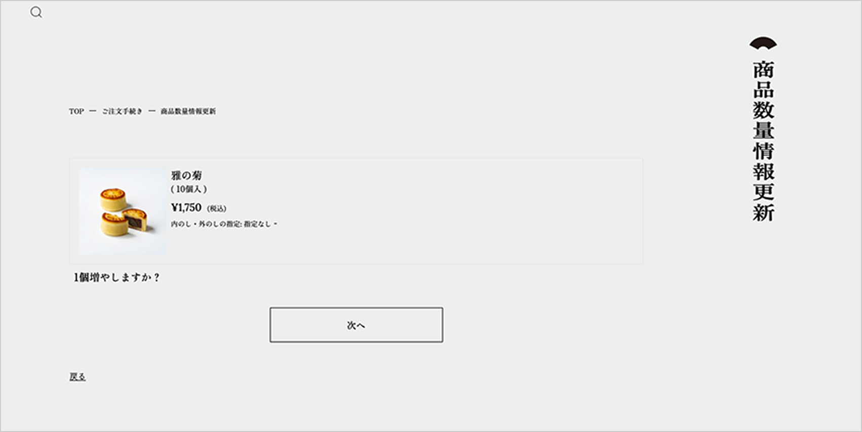 カートに入れた商品数と「商品数量指定」画面で指定した商品数が違う場合、確認が表示されます。