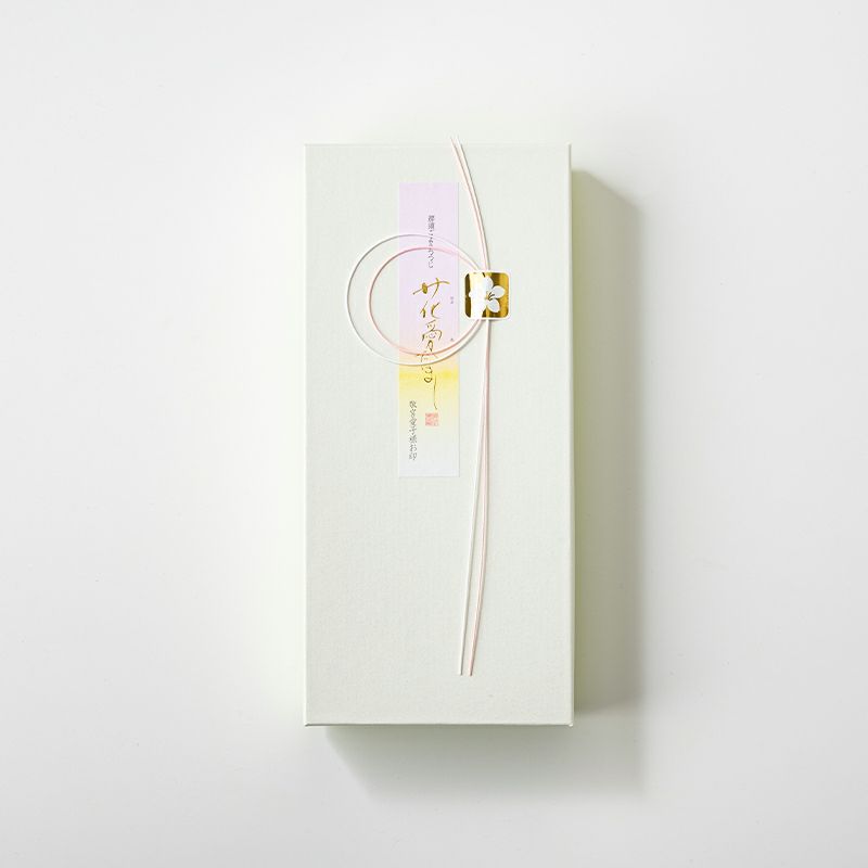 那須の山あいにひっそりと咲く可憐な花「ゴヨウツツジ」をかたどった、愛らしい趣の餅菓子でございます。なめらかな白あんをやわらかな求肥で包み、中央には甘酸っぱいゴールドキウイのジャムを忍ばせました。フルーティで爽やかな味わいをお楽しみいただけます。